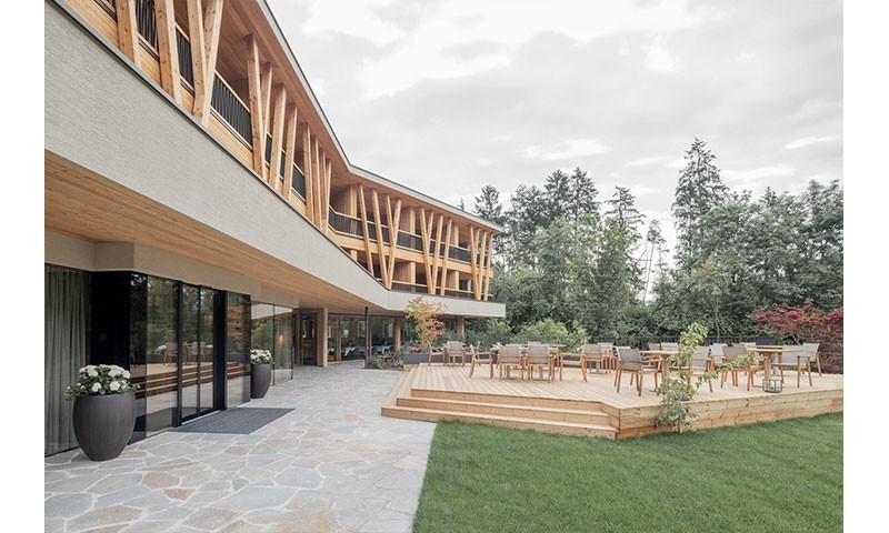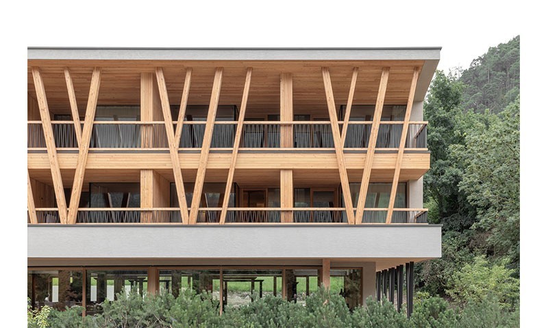 Im Zuge der Modernisierung des Tauber`s Vital Hotel wird der Zimmertrakt des Hauptgebäudes abgebrochen und durch einen Neubau mit 22 Gästezimmern und 4 Personalzimmern ersetzt. Dieser Neubau wird als längliches, zweigeschossiges Volumen auf das bestehende Erdgeschoss aufgesetzt. Im Erdgeschoss selbst werden Lobby, Rezeption, Bar und Lounge neu gestaltet, die Küche wird als Erweiterungsbau neu errichtet. Die tragende Struktur der oberirdischen Erweiterung besteht aus vorgefertigten Holzbauelementen. Die Innenräume werden mit hellen Holzoberflächen, naturfarbenen Stoffen und strukturierten Verputzen gestaltet.